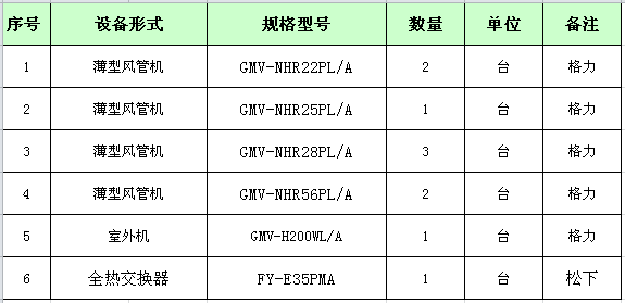 安装使用设备:格力一拖八中央空调系统和松下全热交换器